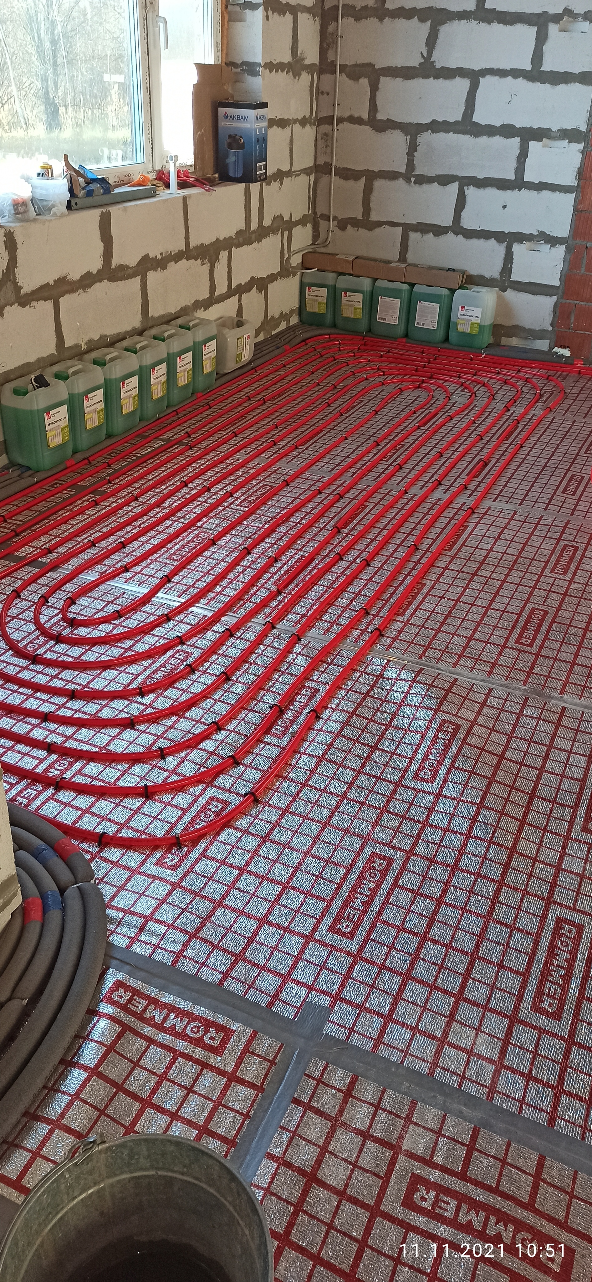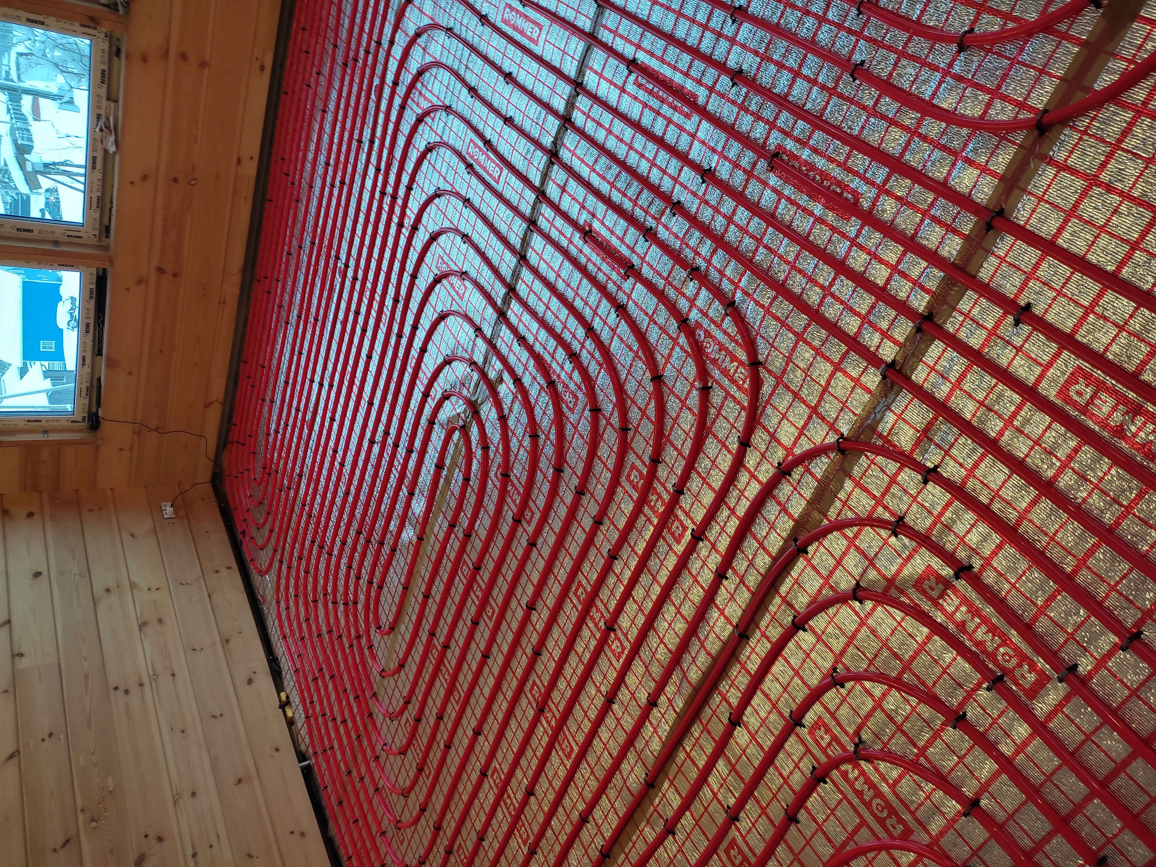 - шага тёплого пола (чем выше потолки и ниже окна тем чаще шаг между трубами)